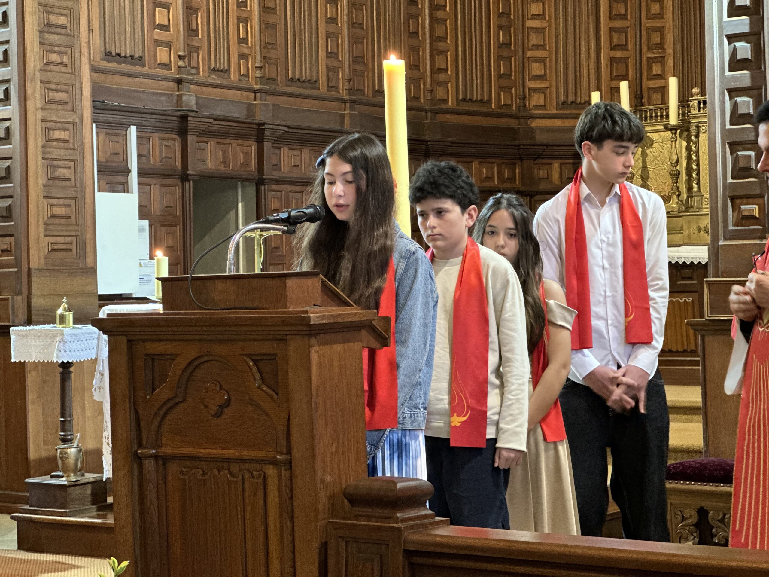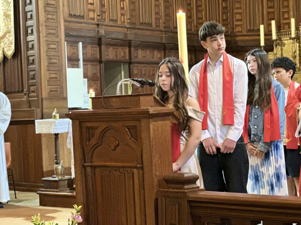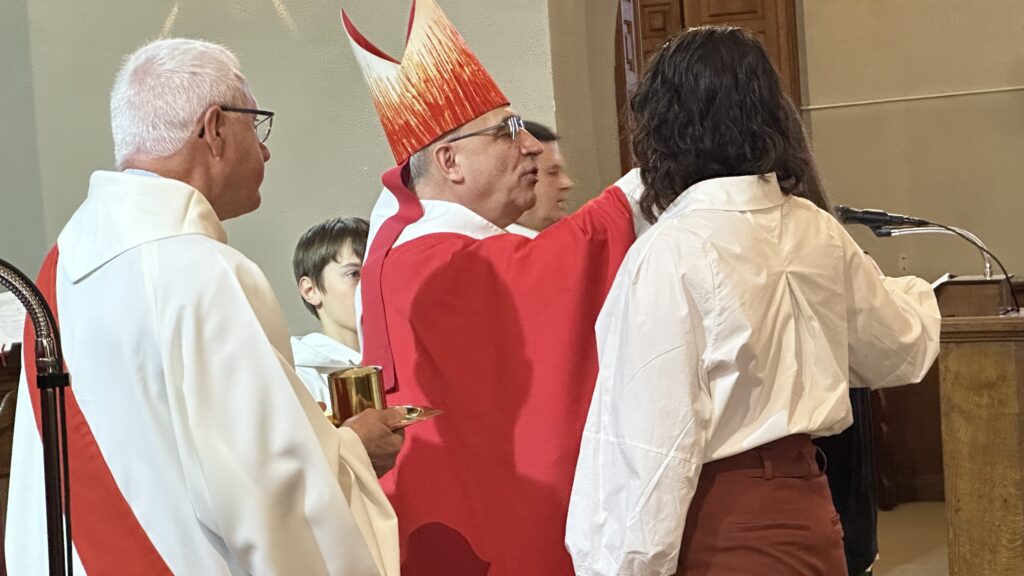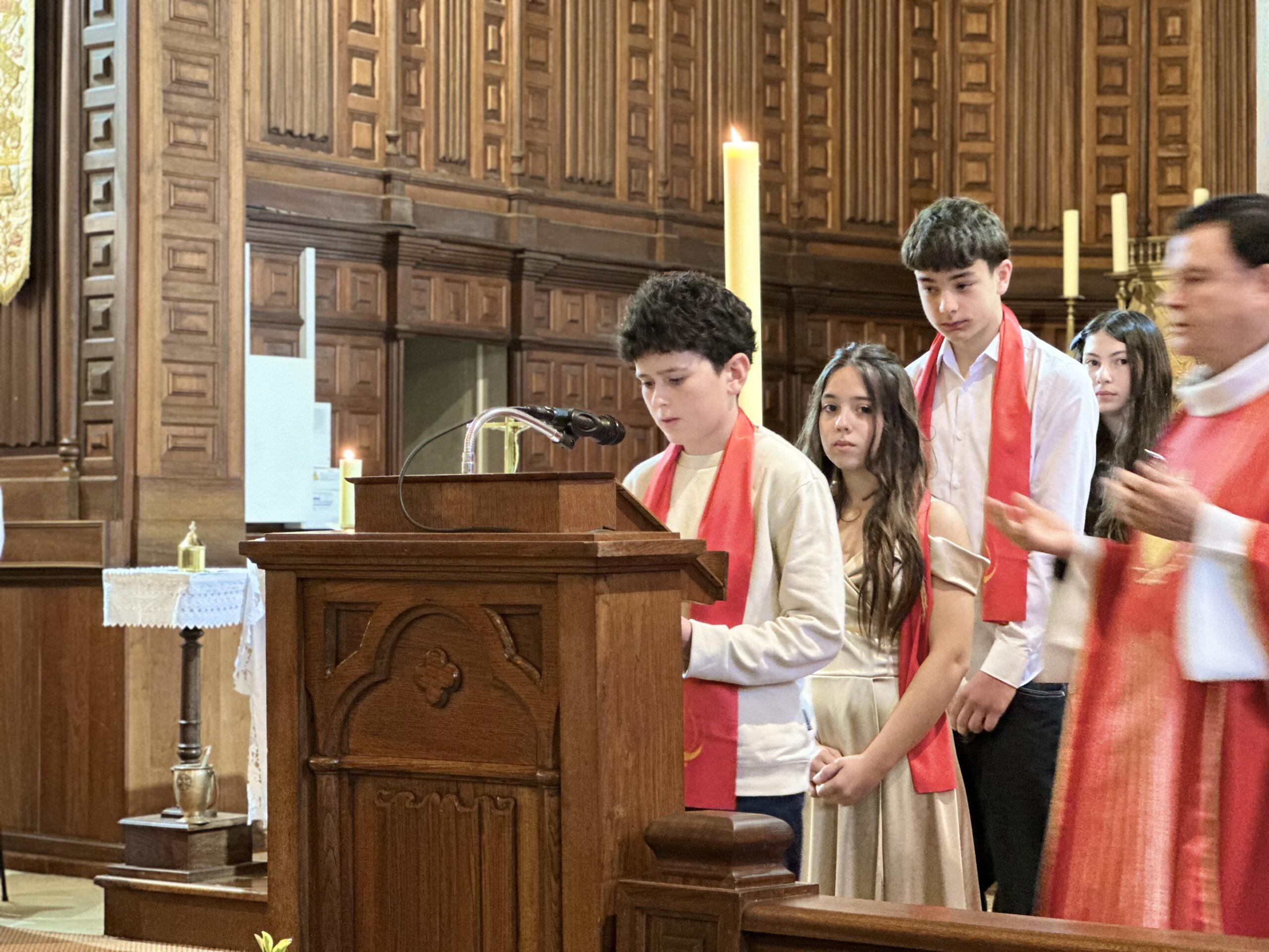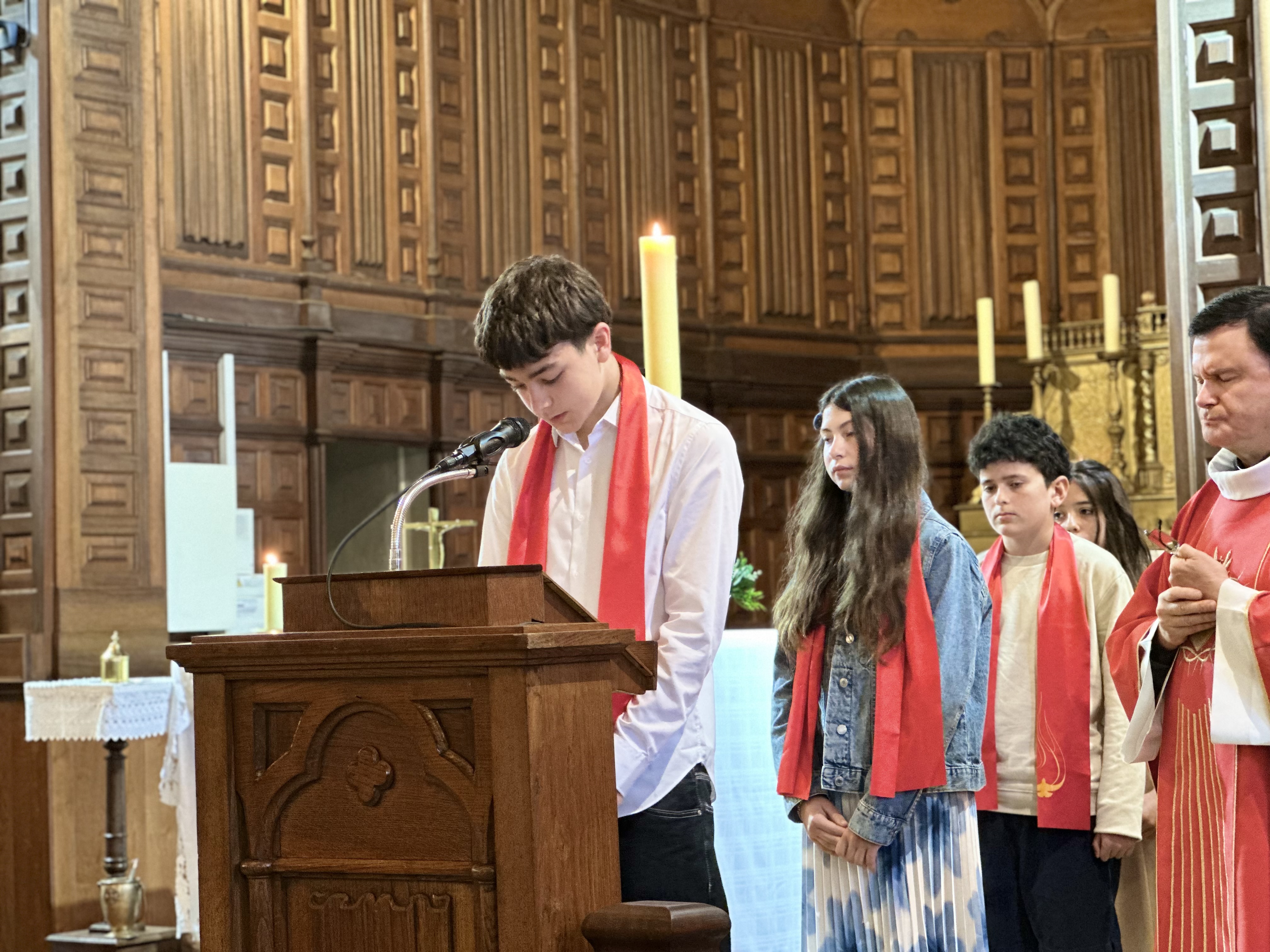 En ce jour, Augustin, Aurélia, Bastien, Julia et Yanis ont reçu la marque de l’Esprit, au nom du Père et du Fils, et ont été consacrés dans la lumière de la Trinité chrétienne.